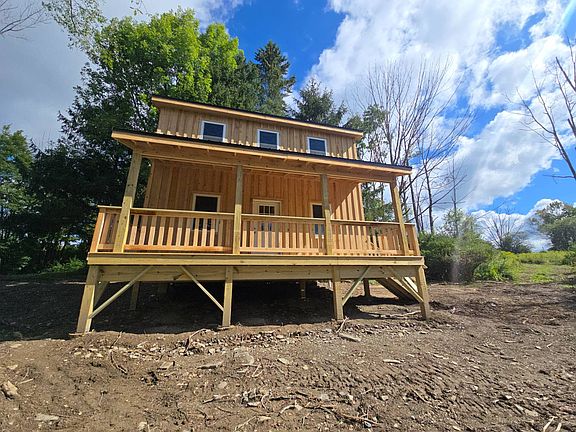 Watch for updates Estimate date of cabin completion 9/1/25 ** note finished cabin photos are what cabin will look like completed*** Beautiful 13+ acre lot just feet away from Maxon Creek State Forest. A brand new 2 story cabin is 16x24 which provides 768 sq ft of living space. It has a 8x24 covered porch that provides a perfect summer getaway or hunting cabin. Someone may want to finish it off and use as a small home. Comes with concrete septic tank, well and electric pole on property. This cabin is quality built with quality material. Cabin comes as a shell for the buyer to put their own twist on it and truly make it their own. Cabin is sided with Hemlock board and baton and also has a beautiful black steel roof. Several openings on the property give potential for future development of food plots or additional areas to camp. Several trails run through the property for ATV use. A small creek is located at the rear of the property. The cabin and would make a beautiful place just to sit and read a book. Several deer signs were noted when this agent recently walked. Maxon Creek State Forest which consists of 905 acres. Provides plenty of room to hunt hike or enjoy all that nature has to offer. Cabin is almost to the end of a dead end road that sees very little traffic.The forest is home to four small streams, which together total 2.4 miles in length and are a part of the east branch of the Tioughnioga River watershed. While the property is remotely located on a quiet country road, amenities are only 4 miles away in DeRuyter, Cortland and Whitney Point are a half hour away and you can be in Binghamton within an hour. NYC/George Washington Bridge is just 3.5 hours away.