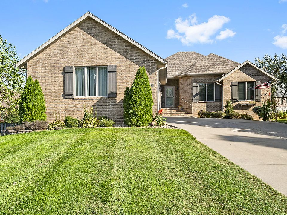 Located in the highly sought-after Kickapoo School District, this all-brick walkout basement home sits on a spacious .35-acre lot in a quiet cul-de-sac. From the moment you arrive, pride of ownership is evident with beautiful landscaping, mature trees, and a fully fenced backyard offering both an upper-level deck and a patio--ideal for outdoor living. Step inside to an open and inviting floor plan featuring a large living room with a gas fireplace that flows seamlessly into the kitchen, complete with painted white cabinets, granite countertops, stainless steel appliances, and a convenient laundry room with an adjoining pantry. The main floor includes two bedrooms and a full bathroom, along with a generous primary suite that boasts tray ceilings and an en-suite bath with a dual sink vanity, walk-in tiled shower, and relaxing jetted tub. The walkout basement offers a second living area with another gas fireplace, a full wet bar perfect for entertaining, two additional bedrooms, a full bathroom, and a large storage room. With high ceilings, quality finishes, and an ideal layout for both daily living and hosting, this home checks all the boxes for comfort and functionality in one of southwest Springfield's most desirable school zones.