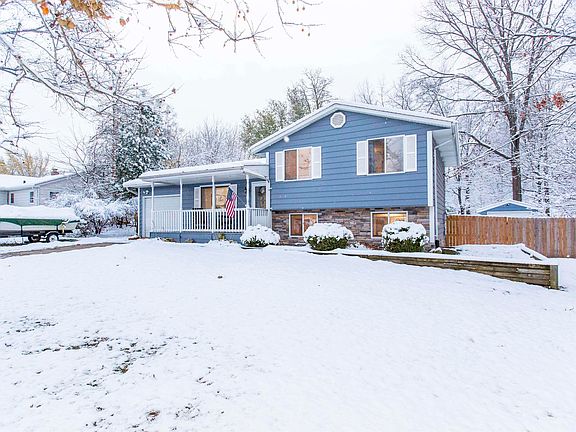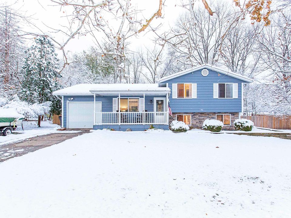 Welcome to country living, Michiana! Step up to a front porch that offers a nice place to sit or hang a swing. Inside you will have plenty of room for your family with 3 bedrooms and a split floor plan. The recently updated kitchen opens to the dining area for easy entertaining. A few steps down from the kitchen is a large living room overlooking the back yard. There are sliding doors that open up to a concrete patio where you can enjoy a large partially wooded backyard. The finished basement room provides more space to watch TV or possibly use as office space or a game room. Upstairs you will find 3 bedrooms and a recently updated full bath. This home has an attached one car garage in addition to a large shed and an extra long one car garage in the back. There is so much to offer here. Make an appointment to tour this home before it's gone because this country living home, close to shopping and restaurants, is all about you!