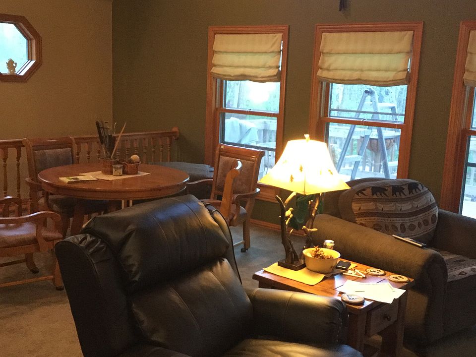 Custom natural hickory cabinets, delta faucets throughout home,cathedral ceilings, custom lighting fixtures inside and outside home. Ceramic tile in kitchen, laundry, master bath and half bath. Floor to ceiling sealed fireplace in finished living area of lower level, dual fuel furnace. 500 sq ft patio, and a 12 ft x 30 ft deck. 4.6 wooded acres, 358 ft of river frontage.