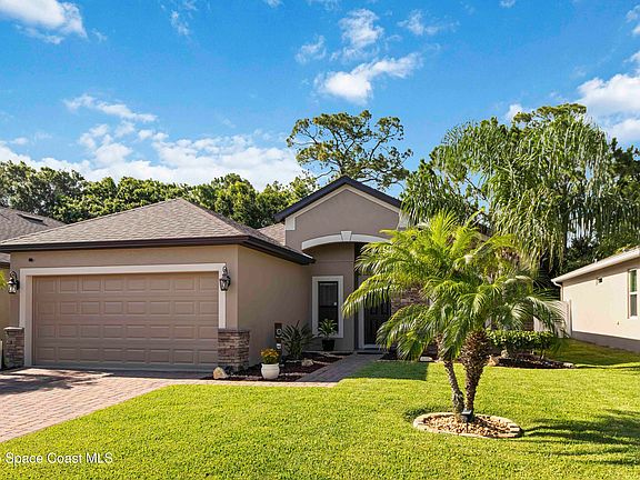 Beautiful 3-bedroom, 2-bath home located in the gated community of Emerald Lakes in Cocoa. The kitchen features granite countertops and brand-new appliances (2025), and opens to a spacious living area with vaulted ceilings and sliders for natural light. Ceramic tile in all wet areas, with cozy carpet in the remainder of the home. The generous owner's suite includes a large ensuite with dual sinks, a soaking tub, and a separate shower. Enjoy a private backyard with a fire pit, no rear neighbors, and tranquil views of the lake beyond the tree line. Roof, A/C, and water heater 2015. Fresh exterior paint May 2025. Community amenities include a playground, basketball court, and jogging trail.