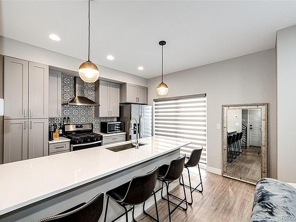 Rooftop deck with Mountain views! Great Regis/Berkeley area neighborhood. Laminate wood plank floors throughout the main level. Modern kitchen with grey shaker cabinets, stainless steel appliances, gas range/oven, quartz counters, and professional grade range hood. The second level features 2 bedrooms and a separate laundry room including a primary suite with an attached bathroom, double sinks, and an oversized shower. The second bedroom also has a full en-suite bathroom making it great for roommates. Both bedrooms have high ceilings and large windows for a light and bright feel. The third level has an exercise room and access to the rooftop deck! The finished basement has a third full-size bedroom and an adjacent full bath. Great for an office space, guest suite, or media room. Conveniently located near I25/I70 for quick city, airport, and mountain access. In like-new condition and has many upgrades. A rare 2-car attached garage has great storage options included!