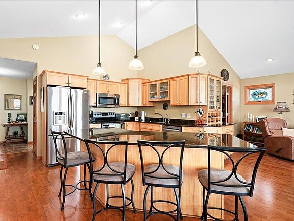 Welcome to lake life! Pride of ownership throughout this four-bedroom/three bath home on private Marble Lake (no public access). This property features two bedrooms on the main floor including the primary bedroom with a walk-in closet and and spacious master bath with separate whirlpool tub and shower. The great room, with it's vaulted ceiling and stunning views, includes a gas fireplace and dining area with adjacent deck. The spacious kitchen features a center island, granite countertops and hickory cabinets. Also on the main floor you will find the laundry room, office and powder room. The lower level features a HUGE rec room with a second fireplace, wet bar and stained concrete floors. It is a spectacular area for entertaining with the oversized windows and sliding glass doors that lead to large concrete patio and gentle slope to the lake. Additionally there are two more bedrooms, third bath, utility room and a work shop/man cave. The home also features five-zone in-floor heat, air-conditioner/air exchanger, two-car attached garage with concrete pad, a hot tub, aluminum roll-in dock, whole house sound system and patch panel to add a generator. The lot is over an acre and features wonderful gardens and landscaping, 80 feet of lake frontage, mature trees, two storage buildings and plenty of space to add additional outbuildings. Book your private showing today and be ready to enjoy summer at the lake.