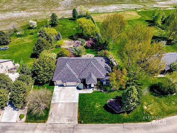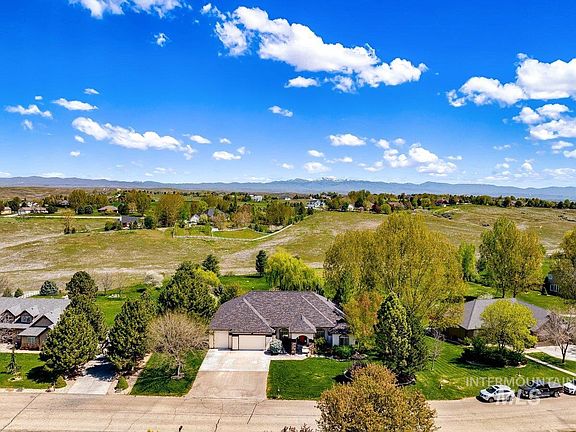 Country Elegance in Desirable Hillsdale Estates! Minutes to Eagle & Star** Comfortable Main level living w/views & E facing daylight walk-out. Office w/custom cabinets. Formal Dining, roomy open Kitchen, upscale appliances, granite, island, B bar, extra counter workspace & storage. New Carpet & Hardwood refinished! Great Room area, fireplace, 240sf covered, relaxing Deck. Lovely wall of windows relish the views while Cooking, Dining & Entertaining! Split floorplan* Spacious Master, Tiled bathroom & walk-in shower. HUGE Closet! 3 Bedrms, window seats, 2 baths-1 en suite has walk-in jetted tub & 36" doors. Perfect for Multi Gen living! Lower level Rec Room, wet bar, 2nd Bonus room, full bath +2 more storage rooms! BIG 5th Bedrm accesses a 580sf Private Patio. Library, 2nd stairs to Garages. Park-like fenced yard, gorgeous flowering trees, abundant open space, far reaching views. Water for Home + Irrig. included in HOA fee $221/mo. Equestrian Center, Catch & Release Fishing Pond. BLM access for Hiking & Riding.