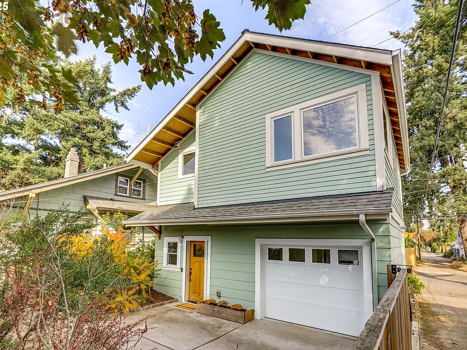 Built in 2019, this detached, stand alone condo combines a fabulous, open contemporary feel with efficient features. The main, upper level has beautiful wood floors, huge vaulted ceilings, surrounded by windows that brings light streaming in giving it an amazing open feeling! The kitchen comes with high end stainless appliances, granite countertops and tons of cupboard space. The lower level features the owners suite with large walk in shower, plenty of storage space and access to the laundry area and attached insulated garage that works well as bonus space and/or extra storage. Situated in the midst of Portlands beloved King neighborhood you’re just steps to the Alberta Arts District and bustling Williams Avenue and a 20 minute walk to Mississippi Avenue has to share. 87 Walk Score and 100 Bike you’d be in a biker and walkers paradise! The simple HOA exists only because the home shares a lot and some utilities with the main house and the HOA dues cover the shared water, sewer and garbage services keeping ownership simple and affordable. Enjoy the privacy of an affordable, detached home with it’s own private driveway, without the usual worries of large, complicated Home Owners Associations.
