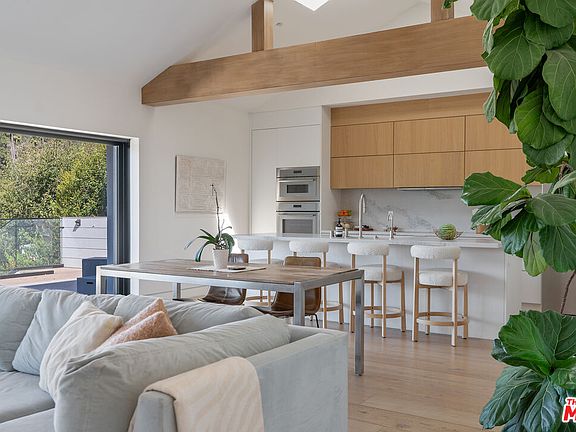 Located north of Colorado Blvd on one of Eagle Rock's most beautiful streets, this redesigned home with a pool and ADU balances indoor-outdoor living with thoughtful, modern upgrades. The entertaining spaces of the main home are anchored by a floor-to-ceiling slider that opens completely to a spacious deck and sweeping hillside views. The kitchen pairs a generous island with abundant cabinetry and premium appliances. The serene, sunlit primary suite offers a true retreat with dual sinks and a walk-in closet. Two additional bedrooms share a stylishly updated bath and connect via a center hall with concealed laundry and extra storage. Throughout, elevated finishes make daily living as functional as it is beautiful. The two-car garage has been transformed into a full wellness studio with weight rack, cardio, cold plunge, and infrared sauna included. Out back, a sparkling pool and spa set the stage for effortless entertaining and easy evenings under the stars. The standalone ADU at the rear of the lot features two additional bedrooms, 2 baths and a kitchen, perfect for visiting guests, a home office or chill pad. All of this is just moments from beloved local dining, coffee shops and neighborhood favorites, with seamless access to the best of NELA. Available partially furnished or unfurnished.
