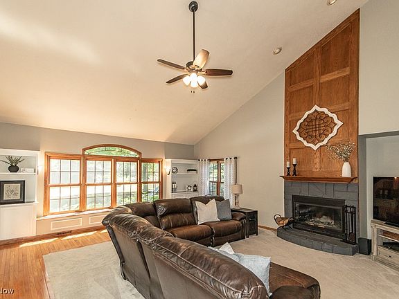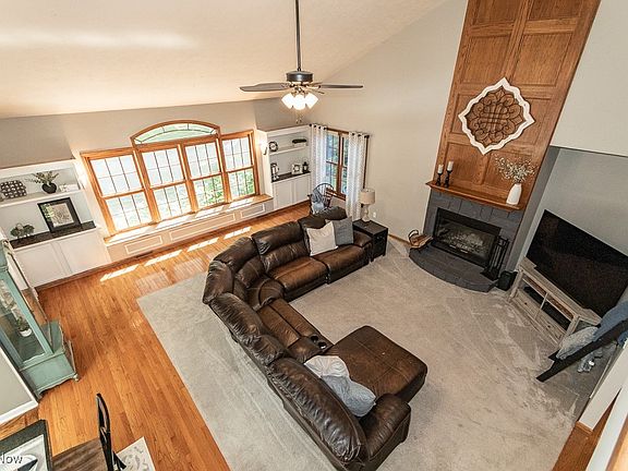 Upstairs, three additional bedrooms share a full bath with double vanity, connected by a charming lofted hallway. The finished lower level provides exceptional living space with a large recreation room anchored by a gas stone fireplace, utility access, and two generous storage rooms. New Roof (2023). Experience a lifestyle of ease and sophistication with well-designed indoor and outdoor areas that enhance daily living. Whether hosting gatherings, relaxing poolside, or working comfortably from home, this property delivers exceptional versatility and enduring appeal. Remarkable. With ample space, modern updates, and a peaceful setting, this home offers a retreat for daily living and lasting memories.