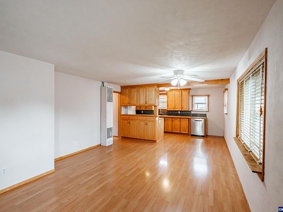 Welcome home! Close to campus and shopping. One level home boasts tons on mature raised beds and is a true gardener's delight. Mature grapes, Apple trees, blueberries and elderberries, currants, quince tree. Grow your own food! Updated bathroom with waterproof LVP, new toilet, and towel bars. Pre-finished wood floors. New Paint inside and out. Updated insulation in ceilings and floors. New roof 8/22. Updated appliances and crown molding in kitchen. Shed/ shop has power. Off street parking. Wood blinds.