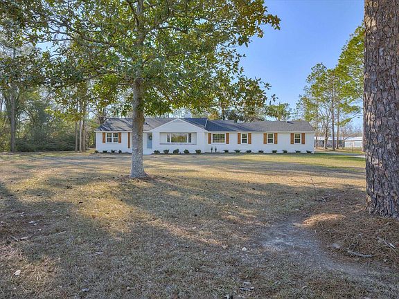 Character, acreage and convenience...these are the calling cards of this stylishly updated brick home on 9 acres in north Burke County. Located just 1.5 miles south of Applewood Golf Course, this ranch-style home boasts beautifully refinished hardwood floors, 3 fireplaces, and large living and dining rooms. The completely updated kitchen features custom cabinetry, granite counters, tile backsplash, stainless steel appliances and an appron front sink PLUS an adjacent breakfast room and cozy sitting area with large windows, a fireplace and French doors that lead to a covered porch. The primary suite is anchored by a 21x23-ft bedroom with a brick fireplace and mantel that serve as a perfect focal point for the space. The suite is served by a walk-in closet/dressing room, and the en suite bath with tile shower boasts an additional walk-in closet. The three spare bedrooms are spacious as well and adjacent to a hall bath with stylish fixtures and tub/shower with tile surround. Have hobbies? Collector of sorts? Then you'll appreciate massive square footage in workshop and warehouse space...the property features a large workshop behind the home and more than 4,000 sq ft of warehouse space with many possibilities for use. The property is situated just 4 miles from Richmond County and is also an easy drive to Waynesboro.