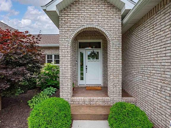 Welcome to 5265 Tottenham Circle - a one-of-a-kind custom home in Terre Haute's sought-after Wyndham subdivision! Built by Don Eyler and masterfully designed by the sellers, this stunning home is full of thoughtful details and upscale finishes. Soaring 10' ceilings with beam accents, engineered hardwoods, and a cozy fireplace create a warm, elegant feel. The kitchen is a showstopper - quartz countertops, custom Amish cabinetry, tile backsplash, and a large island made for gathering. Entertain with ease in the open dining area or head through stained pocket doors to a vaulted sunroom featuring a firebrick built-in grill, prep sink & mini fridge! Sunlight pours through the oversized slider leading to a stamped concrete patio. The spacious primary suite offers patio access and a luxurious en-suite with jet tub, walk-in shower, double vanity, and custom closet. Three additional bedrooms, a dedicated home office, and a well-designed laundry room round out this exceptional home!