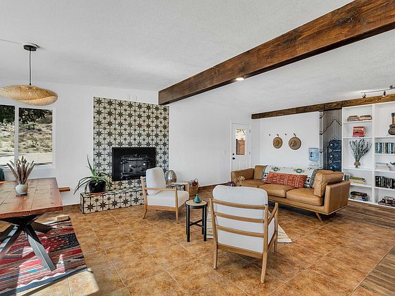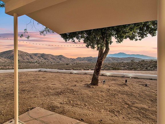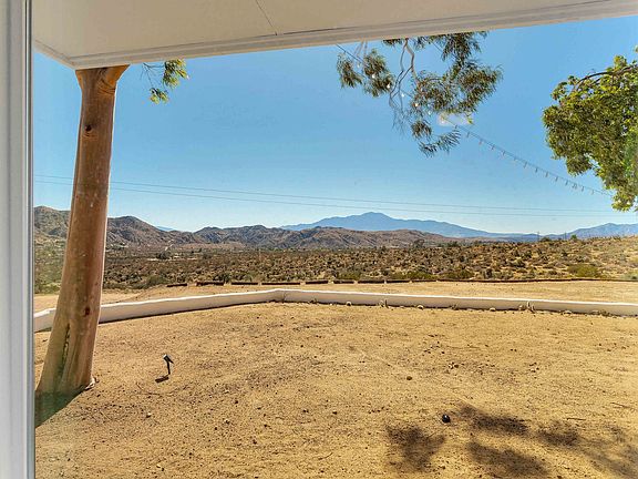 This is a 3 bedroom, 2 bathroom solar home that comes fully furnished with designer furniture. This home is on a 5-acre lot located in a secluded area backed up to a hill with complete privacy and views of a picturesque desert and mountain views. Only 5 min from 29 Palms Hwy, 10 min to Yucca Valley, and Less than 20 min. to I-10, and Less than 45 min. to 29 Palms Marine Base. Ever want to feel far away but not have to go too far? Get away from all the hustle and bustle and relax in serenity. Enjoy the views from the front patio and balcony, or a glass of wine next to the fire pit, play a game of horseshoes, learn to master the game of pool, soak in your own private jetted tub, or read a book in your air-conditioned home. For those who love to cook, this home features a gorgeous chef's kitchen with an island to entertain. You have to see this home to fully appreciate the peacefulness this home offers.