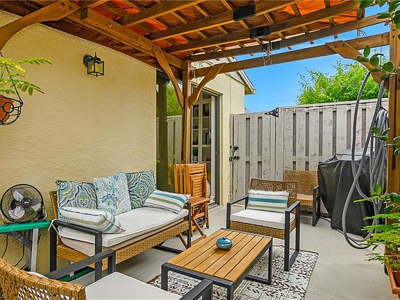 Carefree Southwest Florida Living! Enjoy the perfect blend of comfort, convenience, and low-maintenance living in this charming villa, ideally located in the heart of SWFL. The affordable monthly fee covers your roof, fence, exterior maintenance, water, and more—so you can spend your time enjoying life, not upkeep. Restaurants, retail, Publix, fitness centers, and entertainment are all within a mile, with banks and medical offices right across the street. Sugar-sand beaches, golf, tennis, the River District, Barbara B. Mann Performing Arts Hall, and FSW State College are just a short drive away. Inside, the open, spacious floor plan with an abundance natural light, and two sets of sliders leading to your private courtyard—perfect for relaxing or grilling under the cedar pergola as the sun sets. Beautifully updated throughout: roof (2018), new A/C (2024), new plumbing and ductwork (2019), and modern kitchen with granite counters, deep stainless steel sink, and soft-close Shaker cabinets. All appliances—including washer, dryer, and water heater—were replaced in 2016 or later, plus a brand-new refrigerator (2024) and stove (2025). It’s rare to find such a stylish, move-in-ready home in this price range and location, with so much included. All that’s left to do is move in and start enjoying the Southwest Florida lifestyle!