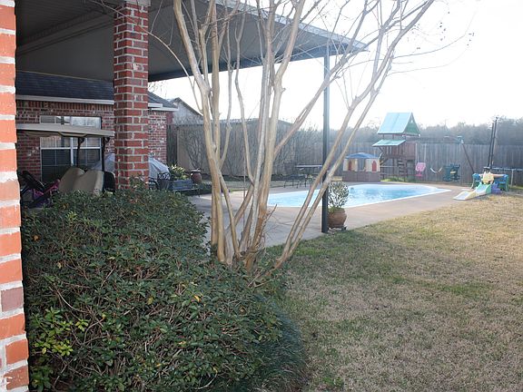 3 Bedroom 2.5 Bath Brick Home with 2 Car Garage on .23 acre. This Home has a open floor plan with separate Dining room and Eat in Kitchen. The Living room has a Gas Log Fireplace and Built Ins beside it. The Kitchen Has Granite Tile Counter tops. There is a Large Utility room that has a Sink. The Backyard is fenced and has a large covered Patio, In Ground Pool, and a half bathroom outside for the Pool. There is also a Storage Building.