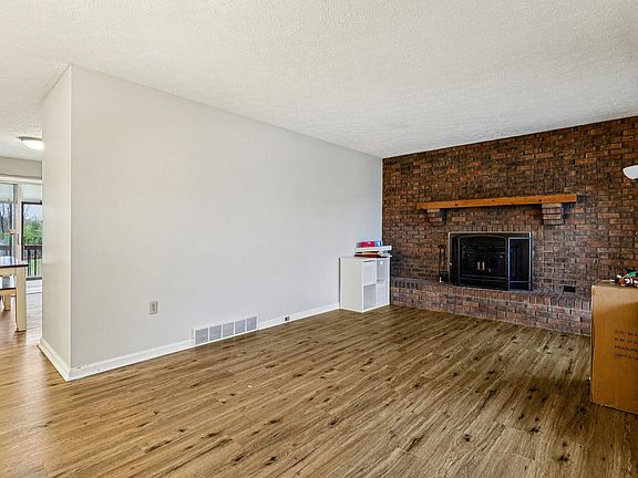 Warm brick fireplaceNewer vinyl plank flooringFenced yardModern lightingFresh paintUpdated kitchenStainless steel appliances