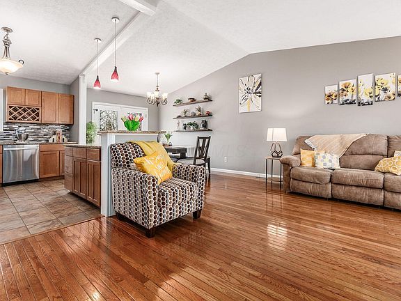 Welcome to this beautifully maintained 3-level split home in the desirable Forest Edge/Strawberry Farms community, minutes away from Easton & the upcoming Intel plant! The open-concept floor plan w/ cathedral ceilings, gleaming hardwood floors, & an updated kitchen w/ ceramic tile floors, granite counters, glass tile backsplash, & SS appliances blends modern convenience with classic charm. The upper level boasts 3 bedrooms w/ newly updated hardwood floors & a primary bedroom w/ a walk-in closet featuring upgraded organizers. The lower level includes a finished living space w/ a wood-burning fireplace, half bath, and laundry. The spacious fenced backyard is perfect for entertaining, complete w/ a large deck and mature landscaping for added privacy and beauty. Move-in ready—don't miss out!