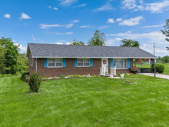 Lovely one level brick ranch with 3 bedrooms and 1 1/2 baths. Home has a new roof 2023, updated kitchen with stainless still appliances, updated full bath with walk in shower and updated 1/2 bath. Hardwood floors, 2'' blinds, chair railing, smooth ceilings, full basement with inside and outside access. Nice detached building for storage or workshop. Concrete driveway with carport and patio. Flat yard with beautiful views. Call for your private tour today!
