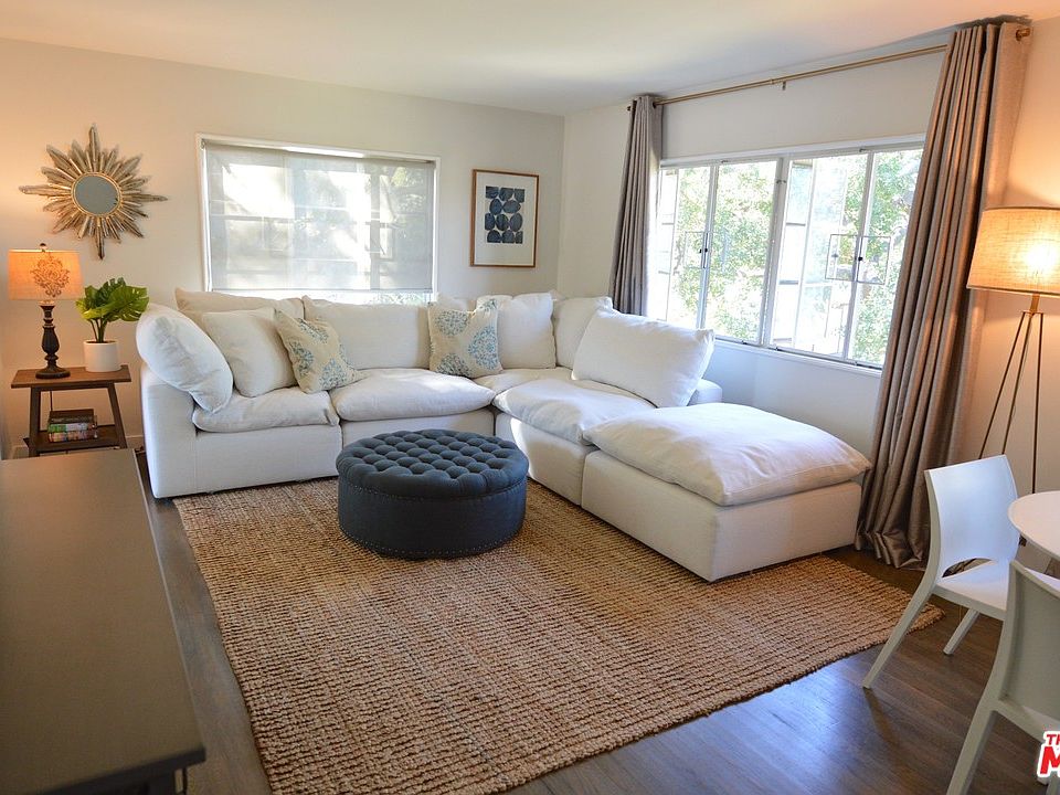 Mid-century architectural style, deluxe, pristine, TOP floor CORNER, 1 bedroom unit . This unit, which receives abundant natural light and is surrounded by amazing trees, has a huge living room, formal dining room converted to second bedroom/office, and is within WALKING distance of the METRO EXPO LINE train station and major freeways. Fabulous and spacious describe this modern unit! Located on 68 acres of lush green grounds that include mature trees, walkways and even a putting green! Village Green offers a serene and tranquil respite from city living. Located in the highly coveted VILLAGE GREEN, which is in the National Historic Registry and offers a significant property tax reduction through the Mills Act. This home boasts of hardwood flooring, an oversized master bedroom with two closets, original casement windows, custom screens and window treatments, a secluded patio offering excellent gardening and entertaining possibilities. One car garage and ample parking plus 24 hour security patrol and onsite management are additional bonuses to this property. Numerous community events, including concerts in the park are just a few of the reasons that "The Village Green" is an oasis in the heart of the city, It's named as one of the 10 BEST-KEPT SECRET PLACES to live in Los Angeles! Conveniently located in Court 15.