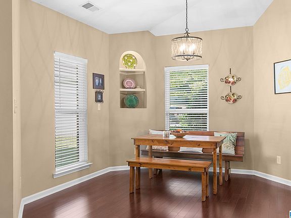 Easy one level living in the heart of Deer Valley. Spacious, open floor plan into the den/eat-in kitchen with granite countertops, pantry, and lots of cabinets space. Convenient laundry closet located beside the kitchen. Cozy dining room that opens into the great room with gas-log fireplace and built-ins. Beautiful hardwoods in main areas and lots of natural light. Private master suite with huge walk-in closet. Master Bath has double vanity, jetted tub, separate shower and toilet area. Two bedrooms with spacious full bath in the hallway. Private, fenced backyard with covered porch and open patio! Enjoy living near everything. Just a bike ride away to school, convenient store or the Ross Bridge Resort. Come see!