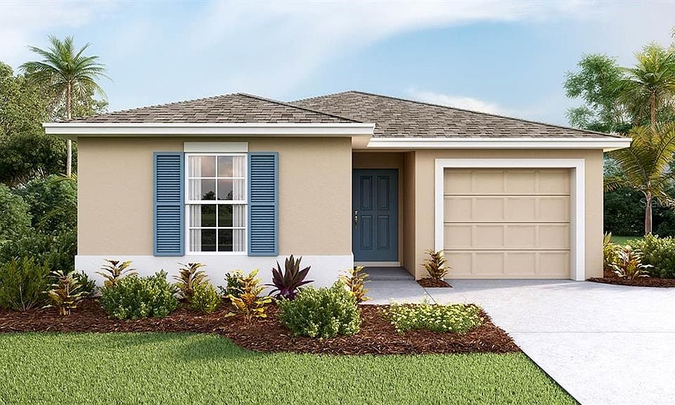 Under Construction. This all concrete block constructed, one-story layout features an open concept kitchen overlooking the great room and an outdoor patio. The kitchen comes equipped with all appliances, including refrigerator, built-in dishwasher, electric range, and microwave. The Bedroom 1 is located off the great room at the back of the home for privacy and features Bathroom 1 and walk-in closet. Two additional bedrooms at the front of the home share the second bathroom. The laundry room comes equipped with included washer and dryer. Pictures, photographs, colors, features, and sizes are for illustration purposes only and will vary from the homes as built. Home and community information including pricing, included features, terms, availability and amenities are subject to change and prior sale at any time without notice or obligation. CRC057592.