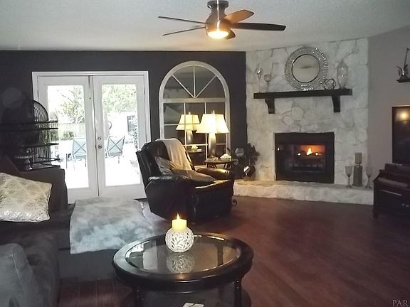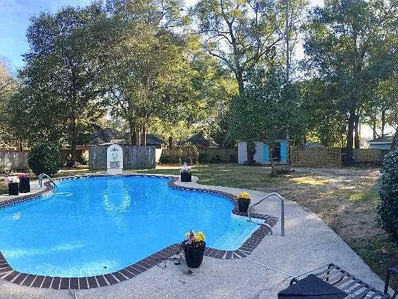Great split floor plan with corner fireplace in great room in popular Woodbine Springs Plantation. Home sits majestically on large lot. Oak tree shade in front with 43'x4' front porch. Rear yard has 18.8 x 20 patio/open area with an in ground swimming pool. Figure eight shaped pool with spa steps, brick coping and polaris. Privacy fenced large, rear yard with gardner's shed and outdoor shower. Master bedroom has sitting area that opens onto pool area and master bath boasts skylight and wall heater. Master Suite approx. 417 s.f.l.a. Gas stove in great cook's kitchen with stainless double sinks. Side-by-side refrigerator can stay. Many upgrades and updates. Garage has pull-down stairs and opener. Design is one-story but dormers make it appear to be a two-story home. Carrier 3-ton, high efficiency A/C unit 16 seer with humidity control and digital thermostat. Tile in laundry, kitchen and baths. Wood-look laminate in foyer, dining and great room. 3 bedrooms have carpet.