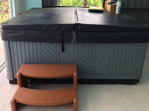 This lovely Key West style home with vaulted ceilings, heated salt-water pool, separate hot tub/spa, and beautiful patio, is ready to move in. It has newer floors, newer kitchen with granite counter tops, newer front loading washer and dryer, and everything has been freshly painted inside and out, including ceilings. Everyone loves living in Rocky Point with water front parks and trendy Port Salerno restaurants within only blocks. Enjoy warm, breezy, tropical evenings on your screened in patio while you relax in your full size hot tub. Or, take a refreshing, aerobic, swim in your beautiful, 28 foot salt water pool. Now's your chance. Close to good schools, shopping, boat ramps, ocean access, and you even have room to park your RV or boat. Don't miss this one.