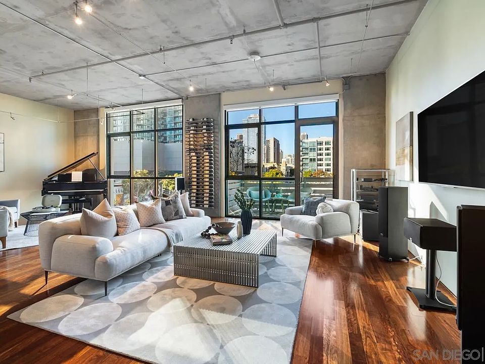 Spacious and Sophisticated Living in East Village! Welcome to Unit 304 in the coveted M2i, offering one of the largest floor plans in the complex at over 1,400 sq. ft. This stunning residence features 11 ft. high ceilings and expansive floor-to-ceiling windows, creating an open and airy ambiance filled with natural light. The thoughtfully designed layout includes a spacious bedroom with a walk-in closet and plenty of room to build out a second bedroom, making this home adaptable to your needs. The upgraded kitchen and bathrooms elevate the space with modern finishes, perfect for those who appreciate both style and functionality. In addition to its interior charm, this unit includes two coveted side-by-side parking spaces and a spacious storage unit. Located in the heart of East Village, M2i provides residents with premier amenities, including a fully equipped gym, two contemporary lobbies, a lush courtyard, and a rooftop patio complete with west-facing views, a firepit, and BBQs. This is your chance to own a sophisticated urban retreat in one of Downtown San Diego’s most desirable buildings.