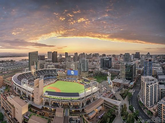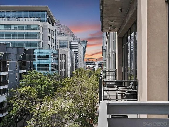 Step into modern city living with this stunning 5th-floor loft in M2i. The condo showcases exposed concrete elements and 11 ft ceilings, offering dramatic floor-to-ceiling windows opening onto a serene 10 ft balcony with beautiful city views. With new vinyl plank flooring and fresh paint, this spacious loft is turn key and move in ready! With outstandingly low HOA dues, M2i features a state-of-the-art fitness center, a rooftop lounge with BBQ grills and panoramic views, a tranquil recently renovated courtyard with a water feature, secure underground parking, and bike storage. Two distinct lobbies, each with its own modern design, greet you, evoking feelings of belonging every time you walk through the doors. Safety is a priority, with secure entry and underground parking. The beautifully landscaped courtyard serves as your oasis in the midst of the bustling city. Parking is never an issue with one underground spot, with the possibility to install an electric charging port. Developed by Citymark in 2006, M2i transformed a full city block in the Ballpark District of East Village; Just a stone’s throw away from the iconic Petco Park, with top rated culinary adventures just steps away. The Ballpark District spans 22 blocks surrounding Petco Park, where the Padres-affiliated Ballpark District Community Partnership provides daily clean-up services to maintain the area. Whether you are seeking a chic urban retreat or a fantastic investment opportunity, this condo combines style, convenience, and value in one of the most sought-after complexes in the Ballpark District.