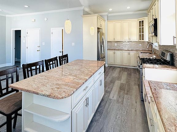 Huge kitchenLarge islandCeiling fanStainless steel appliancesUpdated flooringBright and airyExpansive open layout