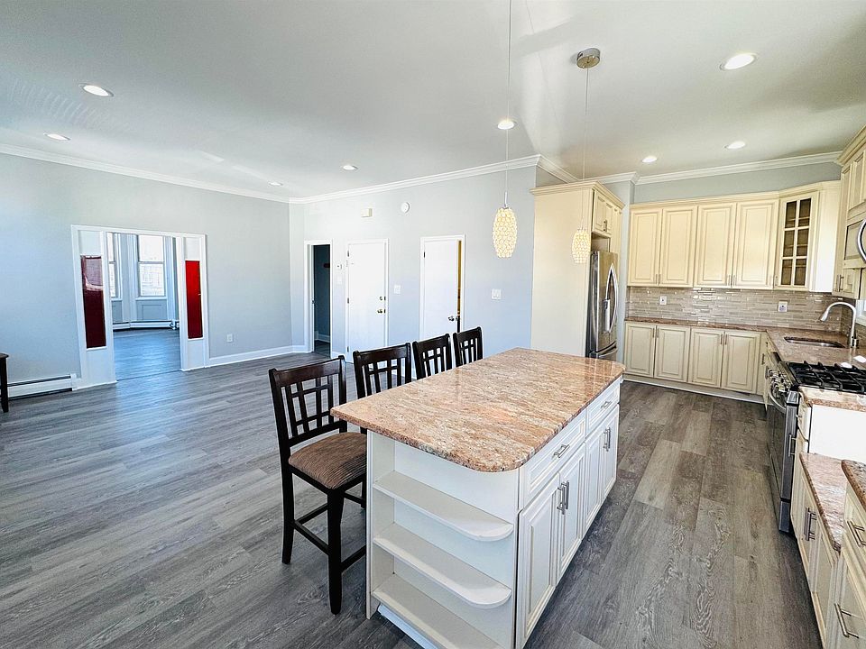 Welcome to your future home in the heart of Union City! This updated 2-bedroom, 1-bathroom apartment on the 2nd floor is ready to offer you comfort and style. The expansive open layout is complemented by updated flooring throughout, making the space feel fresh and inviting. The huge kitchen is outfitted with its stainless steel appliances and a large island, perfect for everyday cooking and entertaining friends. The primary bedroom features 2 closets and a ceiling fan to keep things breezy. The updated bathroom with a walk-in shower is ideal for everyday use. There are 9 windows throughout this corner unit to ensure the space is always bright and airy. The laundromat is just a convenient two blocks away, and parking is on the street. No pets allowed. Available starting October 15, 2025.