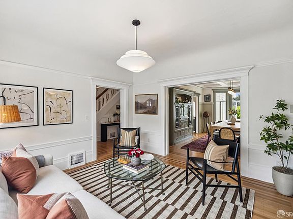 4 bedrooms on 1 level Central Richmond single family home. Large flat backyard with west exposure. 2996ft lot. Recently updated kitchen and baths. Built in 1913 with period details (box beam ceilings, decorative fireplace, leaded glass cabinets, coved ceilings, oak hardwood floors). Garage parking. Laundry room behind garage. Updated electrical. Quiet block near restaurants, coffee, public transportation and GG Park.