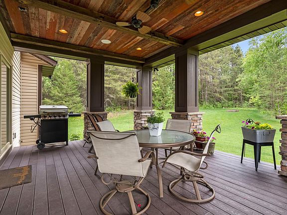 Outdoor living is just as impressive, with a 24’ x 14’ covered rear porch, a wraparound covered front porch, and a large, private yard. The 40’ x 32’ pole barn features cement floors, a basketball hoop, 100A 240v sub-panel and a 14’ x 10’ door, perfect for all your storage or hobby needs. The oversized attached 3-car garage (40’ x 28’) offers even more space.