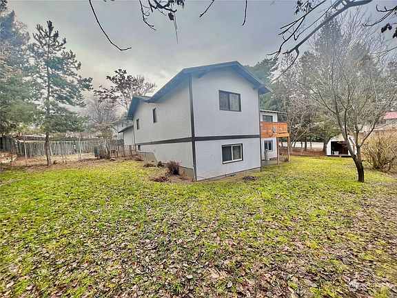OMAK - Opportunity to finish project with your keen eye! 2700+sqft 4 bedroom/2.5 bath home within the heart of Omak. Vaulted ceilings, wood burning fireplace in living room, dining room, kitchen, primary bedroom with en-suite, additional bedroom, attached oversized 440sqft garage, & ceramic tiles throughout. Spiral staircase leading to daylight basement w/additional kitchen, dining area, 2 bedrooms, mechanical room/utility room, 3/4 bathroom, & storage room/cellar. Upper level & lower level have sliders to newer trek deck & patio. Garden space. Brand new compostion roof. City utilities. Cash Only. $254,900 MLS-2187744/H-3206