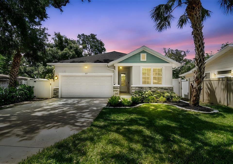 Location, location, location - Discover this highly desirable single-story ranch-style home just a short stroll from Downtown Dunedin, one block north of the revitalized Skinner Blvd and one block east of the Pinellas Bike Trail. Sitting on a spacious 50 x 144 lot, it is beautifully landscaped and enclosed with a white vinyl fence on a quiet, tree-lined street. The Skinner Blvd upgrade to complete early 2026, reduces four lanes to two, and adds roundabouts, bike lanes, and pedestrian crossings. New Construction, upgrades and luxury features – Built in 2023, this home features modern luxury, safety and convenience features including ten foot ceilings throughout, hurricane-rated windows and doors, stylish light fixtures and fans, privacy hedge, paved areas, gutters, and a powerful Duramax 12,000 Watt generator wired through a transfer switch for full house backup power. Smart-home devices include a Ring Alarm System with ten exterior and interior cameras, Light Switches, Eero mesh WIFI, Thermostat, garage door opener, front door lock. The heart of this home is its gourmet kitchen, featuring a large island, elegant quartz countertops, white wood cabinetry, and stainless steel appliances – perfect for cooking and entertaining. The oversized living room has a home theatre with an 85” Samsung Smart TV and surrounded by Sonos central WIFI speakers, also in many other rooms. The expansive primary suite boasts stunning tray ceilings, a sizable en suite bathroom, and a generous walk-in closet. You'll also find two additional well-proportioned bedrooms and an upgraded hall bath. This home also offers a dedicated office and a separate dining room. Step outside to enjoy the lush landscaping from your rear patio, ideal for relaxing evenings or morning coffee. Quality and Warranty - Built of block construction, slab foundation, and tile roof, this home offers peace of mind. A transferable builder provided limited ten year warranty is included covering mostly the structural components and some elements of the Electrical and HVAC systems (see separate documents provided). Extras - The seller is offering to include any and all furniture and furnishings, mostly two years old and top quality including Weber BBQ grill, bedroom sets, living and dining room furniture, and office desk and furniture. Value - New construction in the area is listed and valued at over $550 per square foot, highlighting the desirability of this location and the value of this comparable property offered at just $417 per square foot. Come see it today and make it yours tomorrow!!