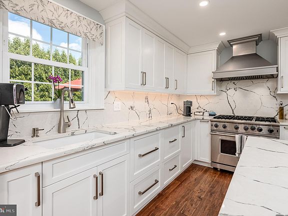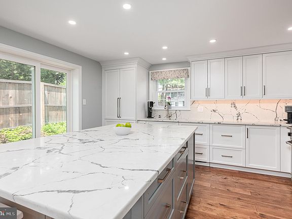 Discover the timeless elegance of this beautifully renovated brick Colonial home, featuring 3 spacious bedrooms and 2.5 luxurious bathrooms. The first floor boasts an inviting office, a comfortable living room, a dining room, and a recently remodeled kitchen, all adorned with rich hardwood flooring. The gourmet kitchen is a chef’s dream, showcasing custom cabinetry, a stunning custom-built in with lighting, quartzite countertops, an oversized island, a Viking 6 burner range and convection oven, Fisher & Paykel dual dishwashers and a Dacor refrigerator both with custom cabinet panel fronts, and a Kohler sink. The kitchen and dining room are illuminated with recessed LED lighting and under-cabinet lighting. Upstairs, the primary bedroom suite offers an abundance of storage with four closets, including two walk-ins, a cedar closet, and built-in closet systems. The ensuite bathroom features a luxurious marble walk-in shower. Two additional oversized bedrooms and a brand-new hall bathroom with a new tub, tile, fixtures, and a recessed medicine cabinet complete the second floor. The fully waterproofed basement, renovated in 2022, provides an exceptional living space with a full wet bar featuring soapstone counters, a kegerator, a beverage fridge, wine fridge and sink. The laundry/utility room is equipped with a new washer and dryer, HVAC system, and gas hot water heater. All windows throughout the home have been replaced for enhanced efficiency. The meticulously landscaped backyard is an entertainer's paradise, with over $50,000 worth of hardscaping, a paver patio, an outdoor kitchen area with a natural gas grill, lighting, a new shed, and a new cedar privacy fence. This home is the perfect blend of classic charm and modern luxury.