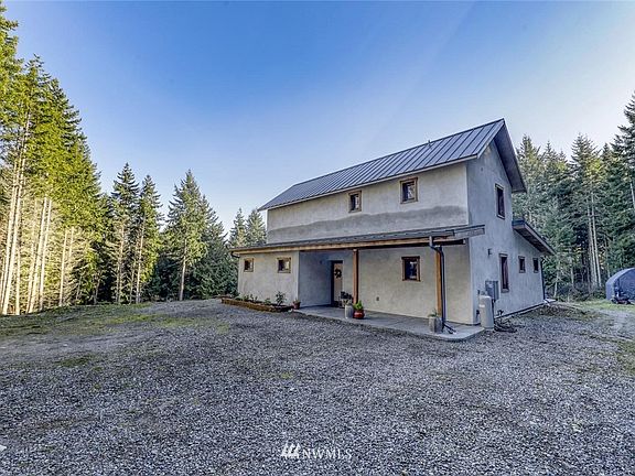 Almost new, truly special home tucked away on a very private 5 acs. 10 mins from downtown Port Townsend. A fantastic build w/ true passive solar gain as the goal, using Faswall Blocks & a strict no VOC's as the rule featuring: Lime plaster on the blocks, Sheep's wool for insulation, including int. walls, no VOC drywall, paint & plaster on the interior walls, SIP's panels for the 2 low roofs, Windows and ext. doors are Euro style aluminum clad from Zola, Flooring is Wide Plank white oak with No VOC install. and finish, int. lighting, and fixtures all spec'd by Rejuvenation hardware, tankless hot water heater, whole house water treatment, 500 gal. buried propane tank, Tulikivi masonry heater w/ soapstone finish heats the entire house.