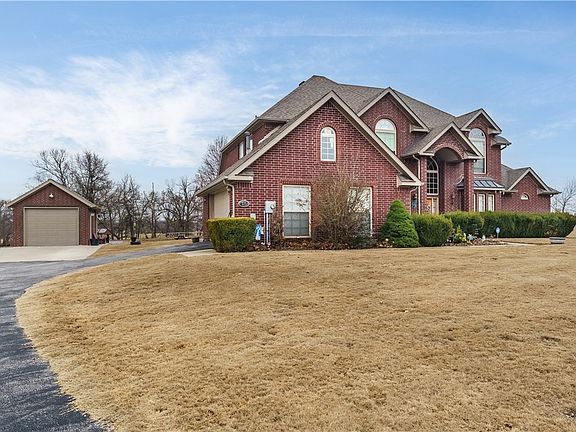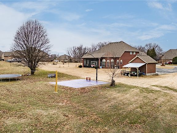 This wonderful home sits on 1.5 acres with beautiful pasture views in an estate-style neighborhood. You'll love the flat, cleared lot with a separate lighted basketball court area, zip line, and lots of room for all the activities your family loves. 2 stories, 4 bedrooms, & 3.5 baths. Formal dining and office space, and a walk in pantry in the kitchen. Lots of natural light, and great space in between the neighbors giving you plenty of breathing room! The primary bedroom is on the main level and is oversized with a sitting area surrounded by windows. Upstairs you'll find 3 bedrooms and 2 bathrooms. The detached storage garage offers storage space with a lean-to on the back for even more covered storage. Roof replaced in 2018. HVAC replaced in 2019. Ready for your updates! Enjoy the beautiful views from the backyard on the screened-in back porch! 4 min. from Hwy 612, 5 min. from Hwy 112, and 5 min. from Har-Ber High school - convenient for getting around anywhere in NWA! Come make this wonderful place your home!