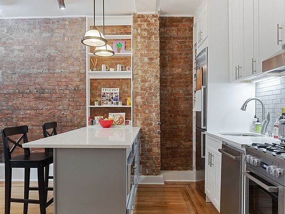 Gorgeous 2 bedroom at the "Britannia Condominium", the historic, landmark "Gargoyle Building" at 110th Street and Broadway, 5 minutes to Columbia University, 1/2 block to the 1 train, two blocks to Central Park and Riverside Park and surrounded by fabulous shopping and restaurants. Stunning apartment with ornate details throughout including exposed brick walls, gorgeous oversized windows and soaring ceilings. Open renovated kitchen with quartz counters, stainless appliances, a custom backsplash and a breakfast bar/island allowing for the most efficient use of space. Built-in storage and custom lighting complete the picture! Fabulous and truly one-of-a-kind landmark building with part-time doorman, onsite Resident Manager, storage and laundry room. Please call or email for an appointment today.