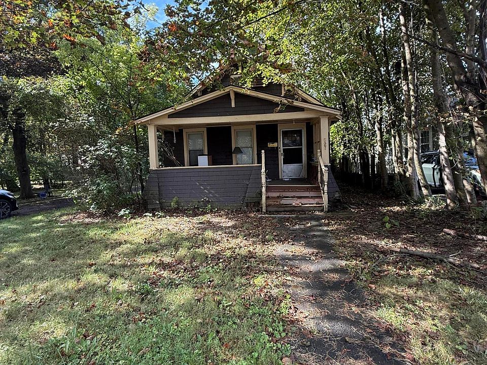 Inside, hardwood floors grace the living room, while the kitchen and bathroom feature durable tile for easy upkeep. The kitchen is equipped with stainless steel appliances, combining modern convenience with timeless appeal. Bedrooms are carpeted, with the possibility of hardwood floors underneath, offering potential to restore even more character and value. Original woodwork highlights the home's charm, and the layout provides flexibility for today's lifestyle. All major mechanicals are on and functioning, including a newer furnace. Please note that the power is currently off and will be turned on within the week. Once reactivated, the home could be move-in ready, and with a thorough cleaning and cosmetic updates, buyers will have the chance to personalize and gain instant equity. The finished attic expands usable space, providing versatility beyond the two traditional bedrooms.
