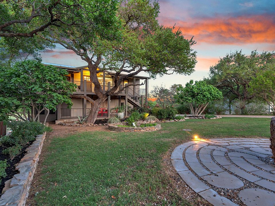 *Seller may finance for qualified buyer* Welcome to your serene oasis at 527 County Road 421, nestled on a sprawling 2.570-acre lot in picturesque Spicewood, Texas. This captivating 3-bedroom, 3-bathroom waterfront house promises a life of tranquility and luxury with its very own beach on Lake Travis and 130 feet of water frontage. Bask in the serenity of Hill Country living with the property's gentle slope to the water. Facing the untouched beauty of the 1145-acre Turkey Bend Recreation Area, your new home is poised for stunning, unobstructed views. This home boasts an excellent water source through the neighborhood well, along with an additional well on the property that has never run dry! Designed for the ultimate entertainer, this home features an expansive outdoor living space, including a 943 SQ FT deck with an outdoor kitchen and fireplace. The seamless indoor-outdoor flow is facilitated by a wall of windows that frame the breathtaking views and invite natural light to flood the spacious interior. The heart of the home is the screened-in porch, adding 282 sq ft of climate-controlled space, perfect for enjoying the lake breeze without leaving the comfort of your home. The thoughtful mother-in-law floor plan includes guest quarters with a luxurious private bath, while all bedrooms boast en-suite bathrooms for ultimate convenience and privacy. Experience the luxury of outdoor relaxation in the lush front garden under a canopy of majestic trees, or cool off in the stock tank pool while being surrounded by nature. The sound of waterfalls drawn from the lake by an electric system adds to the outdoor ambiance. With proximity to local gems like Krause Springs, casual and fine dining, and Spicewood Vineyards, your hill country resort lifestyle awaits. Embrace this stunning Spicewood retreat – your perfect getaway or forever home. *See video of creeK/waterfall*
