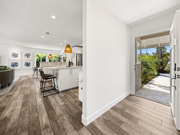 Discover 527 Dentro Drive, a modern rancher situated on a sought-after cul-de-sac street, beautifully framed by elegant palm trees and meticulously designed front landscaping. Upon entering, you'll be welcomed into open-concept living and dining areas illuminated by natural light from an array of windows. The fully equipped gourmet kitchen is a culinary enthusiast's dream featuring stainless steel appliances, farmhouse sink, and a generous island that serves as the centerpiece of the home. The luxurious primary suite showcases a customized closet design, a spa-inspired en-suite bathroom, and soothing views of the backyard. The enticing interiors flow effortlessly into the backyard, offering a seamless indoor-outdoor experience. Emerge into an entertainer's paradise featuring a built-in- bar, BBQ, and backyard fire pit ideal for vibrant gatherings or peaceful evenings. Additional amenities include upgraded bathrooms, finished 2-car garage with ample storage cabinets, dedicated laundry room, new tankless water heater, and air-conditioning throughout. Conveniently located near neighborhood open spaces and within the esteemed Foothill attendance area, this stylish home invites you to fully immerse yourself in the Santa Barbara lifestyle.
