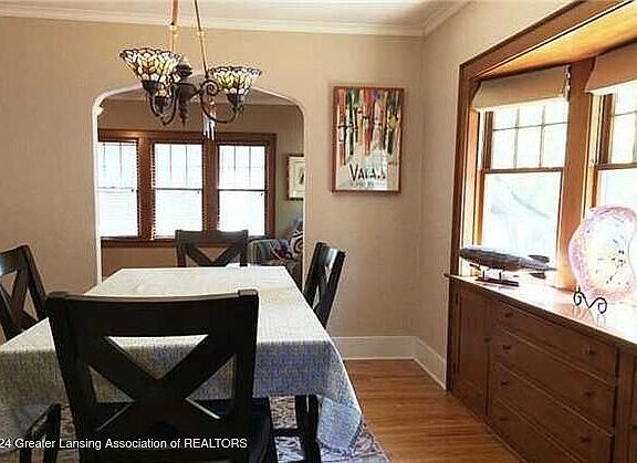 Welcome to 527 Division Street - a charming three-story storybook-style home located in the desirable Bailey neighborhood. Located within minutes of MSU, parks, and all that downtown East Lansing has to offer. The home offers a spacious 5-bedroom, 1.5 bath layout with a finished third-floor space - ideal for a home office, playroom or 5th bedroom. The formal dining room features a beautifully built-in buffet. The main floor guest bedroom or den/office area adds additional flexibility. The 2nd floor primary suite features newer sliding doors to an updated deck. Enjoy your morning coffee or afternoon beverages in a serene private setting. Full bath and 2 additional bedrooms with French doors in between finish the 2nd floor level. The home has been lovingly maintained and features several updates, including newer mechanical systems and plumbing, a newer roof on both the house and garage, newer chimney caps and grates, and redone brick mortar for added durability. The kitchen has updated subway tile backsplash and soft color painted cabinetry. All appliances stay! Breakfast nook with half bath is located just beyond the kitchen. From the garage, the updated side entry door with decorative glass leads you to the lower level or kitchen.