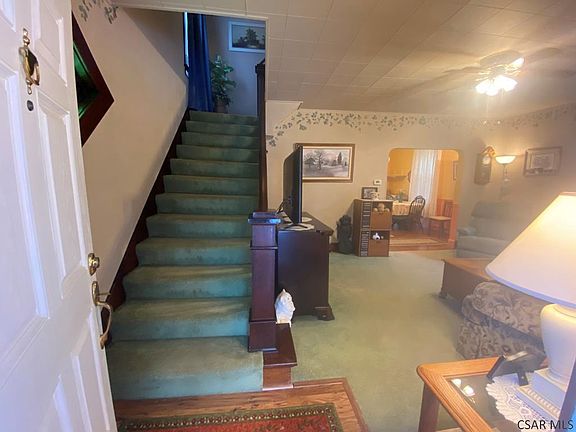 WELCOME TO THIS WELL-MAINTAINED VINYL-SIDED HOME IN THE 20TH WARD OF THE CITY OF JOHNSTOWN! Among this home's many features are the inviting covered front porch; living room with stained glass accent; updated kitchen with newer cabinets and appliances; adjoining dining room; and loads of natural light in the ceramic tiled sunroom. Three bedrooms on second floor and fully finished bonus room on 3rd floor. The full bath includes corner shower, vanity, and separate sitting area. Bonus shower and commode in basement. One car detached garage with electric; oversized carport with concrete parking pad; newer furnace; roof; chimney liner; privacy fence with hook-up for hot tub; hot water tank; and much more. Call today for more details!