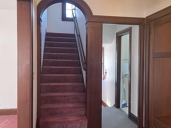 This Federal Colonial is a must see! Being a 3BR, 1.5 bath this home offers great square footage and hardwood floors throughout. This home was said to have been built by a Colonel who shipped in all the woodwork from overseas. You will want to see the stunning brick wood fireplace that takes up most of the living room wall, the arched doorways & of course the butlers pantry & adorable breakfast nook. Formal dining room with swinging door, large bedrooms, tons of storage in the built closet area at the top of the stairs & walk in closet with bench seating in the primary bedroom. Basement is partitioned in two areas with laundry on one side & storage with tons of shelves in the other. Garage is detached & there is room for a small patio table or outdoor seating out the back.