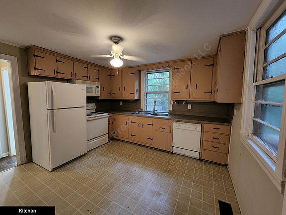 Three bedrooms, two bathrooms with living room. Eat-in kitchen includes refrigerator, stove, dishwasher, and microwave. Stack washer and dryer included. Central heat and air. Hardwood and vinyl floors. Off-street parking. Large yard with storage shed. Ceiling fans. Tenants responsible for all utilities and yard maintenance. Yard maintenance included. Pets accepted on a case-by-case basis. **Not available for showings until August