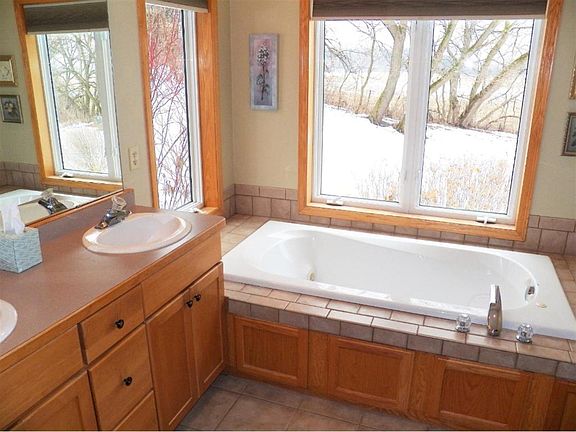 Tucked away in a quiet neighborhood on 2 beautifully wooded acres, this spacious 5 Br, 4 bath home offers convenient access to town & I-94 access. Loaded with features you're looking for, like covered front porch, large low maint. deck with hot tub, 3 car heated att. gar, 2 car det. gar, MF master suite with separate shower & jetted tub, 2 fireplaces, surround sound, hardwood & tiled floors, granite countertops, MF laundry & study, built-ins, bonus room over gar, open design & more. Must See.