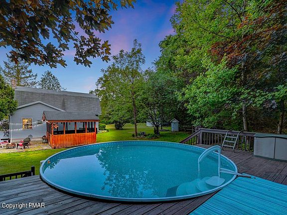 Introducing this charming 4-bedroom, 2-bath home nestled on a sprawling acre of lush greenery and tranquility. You will be captivated by the tastefully updated kitchen, equipped with modern appliances and featuring a functional layout that any home chef would adore.The house features 4 spacious bedrooms, each offering ample natural light & storage space.The 2 well-appointed bathrooms combine functionality with style. Enjoy outdoor private oasis, featuring an above-ground pool, great space for relaxation & recreation during warm summer months, paver patio & screened cabana perfect for entertaining or enjoying serene evenings.Full Spacious basement with Bdry System, 2 Car Detached Garage. Short-term rentals are allowed. Located Minute to all Pocono Attractions & Schools.