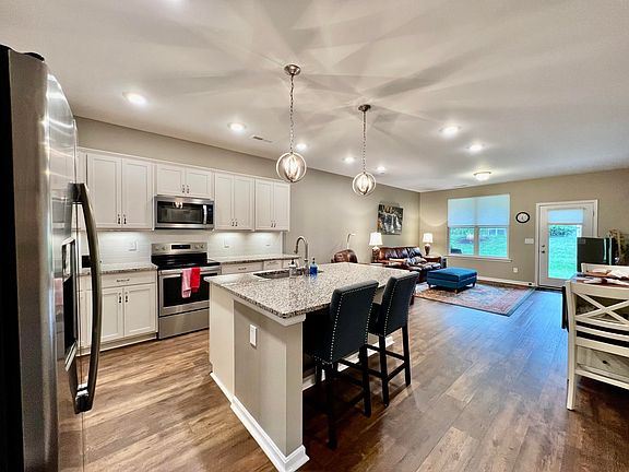 - Features: Kitchen Island, Eat-in Kitchen, Pantry, Wood Cabinets, See Remarks, Plank Flooring