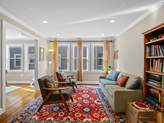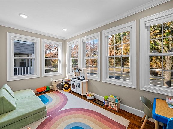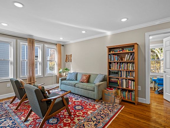 How often does a home with miles of rolling paths along a park outside its door, and proximity to highways(93) the Green Line Extension, Tufts University and shopping and restaurants come along? This 2020 full house renovation is a rarity, and worth taking the time to experience before it is gone. Step inside to an open floor plan, luxurious finishes, and an abundance of light and windows on all sides. Sleek hardwood floors and recessed lighting run throughout. The living spaces flow well, including a front sunroom with a wall of windows, ideal for a playroom or office. The kitchen boasts tall white cabinets, shimmering glass tiled backsplash and a large swath of quartz countertops. The primary bedroom holds an ensuite bath, and all the bathrooms have stone counters and marble tub surround. The lower level, in its current use, is large enough to be a playroom, office and spare bedroom! Hydro air heat, central AC, back deck, and solar panels(owned). Pet friendly & self managed.