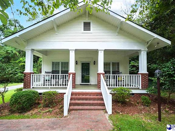 Check out this cute craftsman style home! Located in close proximity to Downtown Hartsville, Sonoco, and Coker University, this two-bedroom, one-bath home offers charm and comfort on a full acre of land surrounded by serene woods. Inside, you’ll find 10-foot ceilings throughout, an open-concept kitchen and living room, and beautiful built-in shelves with pillars that add character and function. Outdoor amenities include a covered carport, three exterior storage closets for added convenience, as well as a great front porch. | Investor Highlight: This home has been an active short-term rental since 2022. Over the last year, it has averaged $1,900+ in gross monthly revenue with an average occupancy of 49% — making it not only a comfortable residence but also a proven investment opportunity. | Furniture can convey with an acceptable offer. *Listing Agent is related to the sellers*
