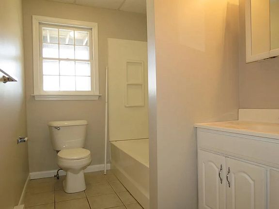 The modern kitchen is fully equipped with all new appliances - electric range, refrigerator, and cabinets, while the full bathroom includes a new bathtub, vanity, and toilet for your comfort.